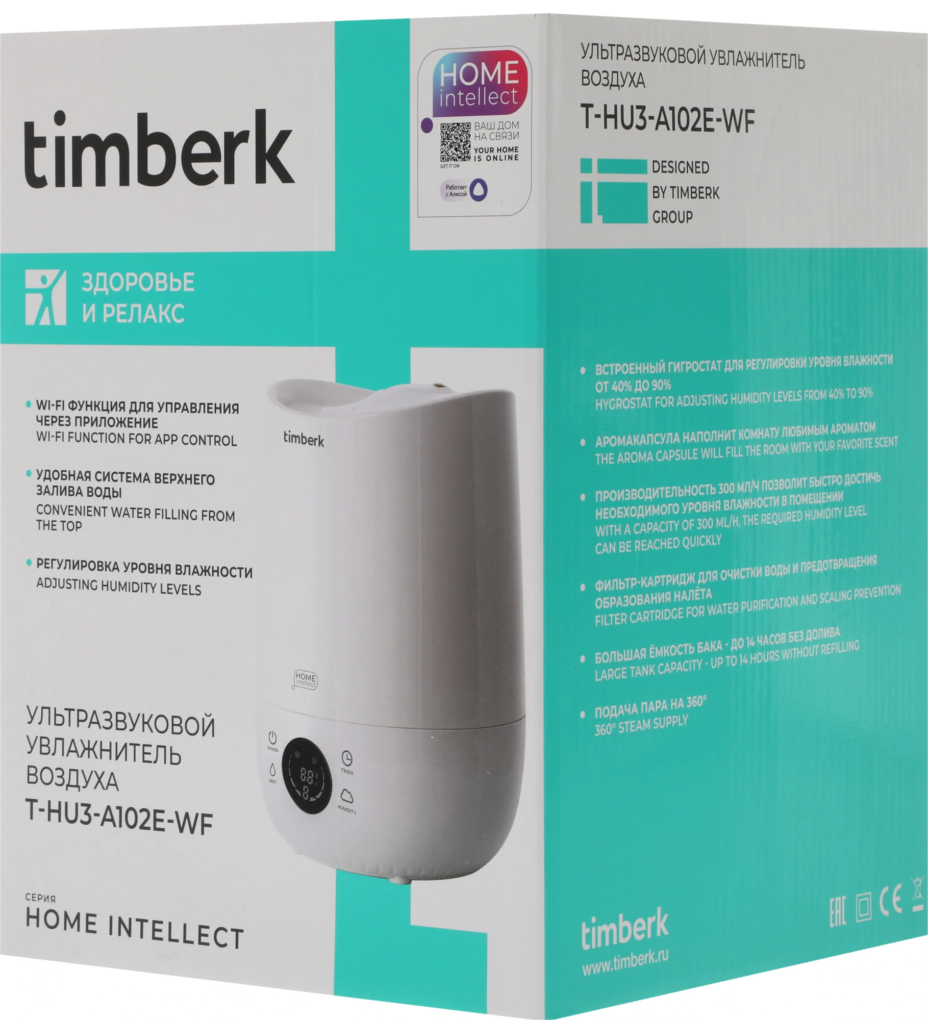 Увлажнитель воздуха Timberk T-HU3-A102E-WF 23Вт (ультразвуковой) белый (T-HU3-A102E-WF)