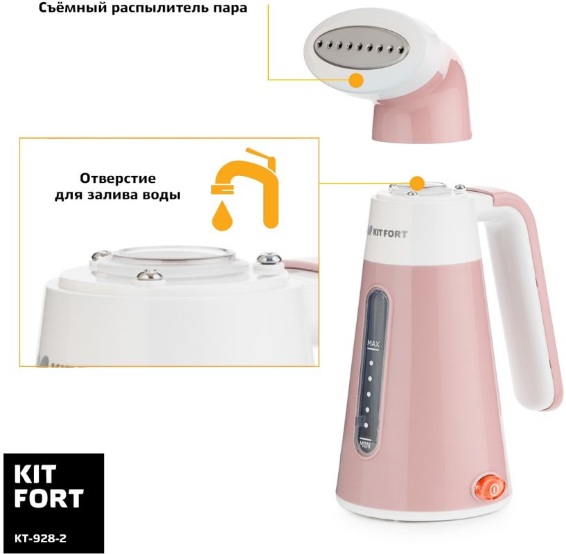 Отпариватель ручной Kitfort КТ-928-2 600Вт персиковый/белый (КТ-928-2)