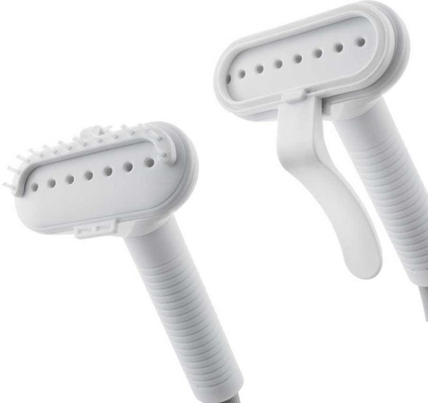 У отпаривателя в комплекте идут 2 насадки. Ворсовая щётка прекрасно справится с очисткой ткани, мягкой мебели от мусора, шерсти домашнего животного, волос. Зажим для отпаривания брюк позволит без труда прогладить стрелки или разгладить глубокие складки.