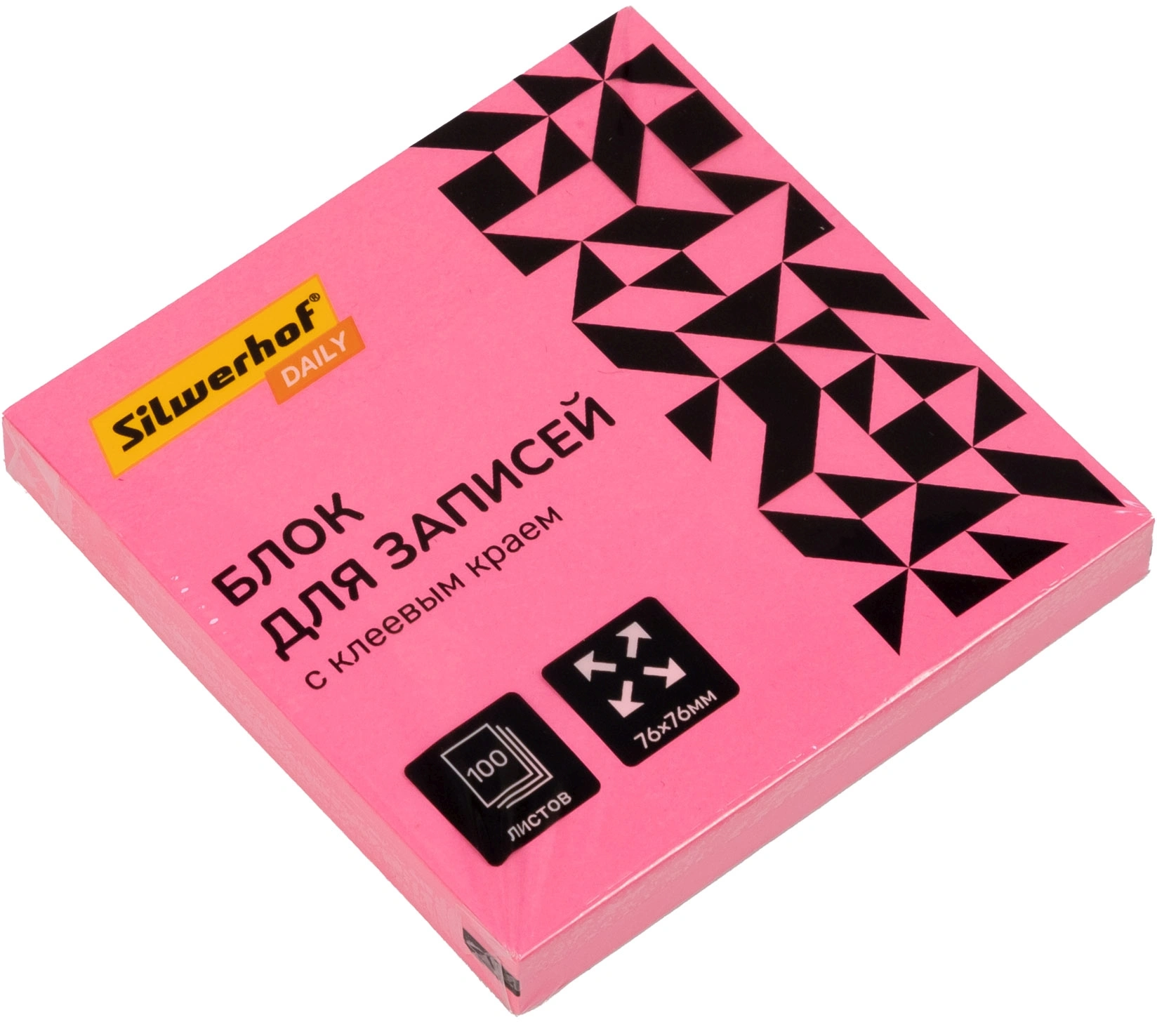 Блок самоклеящийся бумажный Silwerhof Daily 76x76мм 100лист. 75г/м2 неон розовый (упаковка 12 шт.)