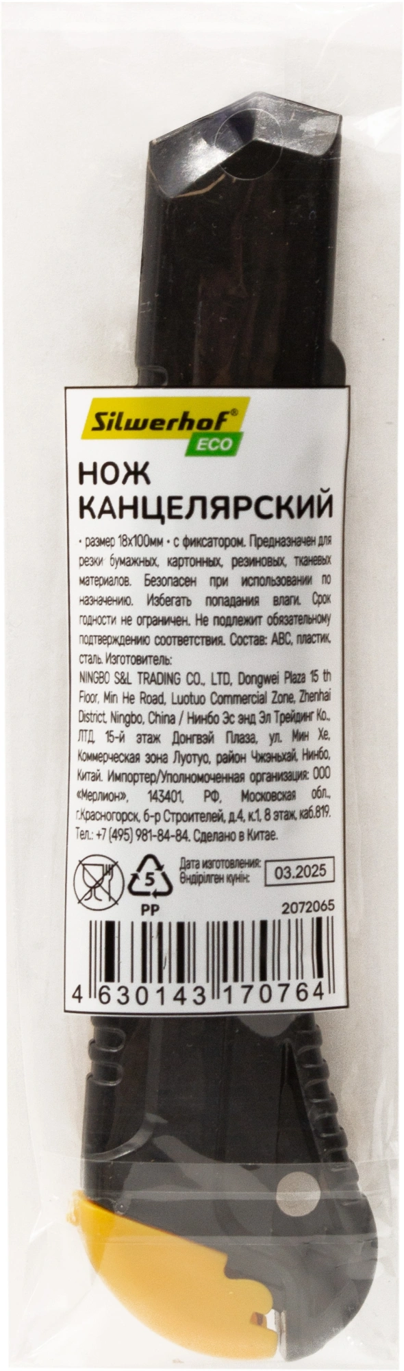 Нож канцелярский Silwerhof Eco шир.лез.18мм фиксатор ассорти пакет с европод. (упаковка 24 шт.)