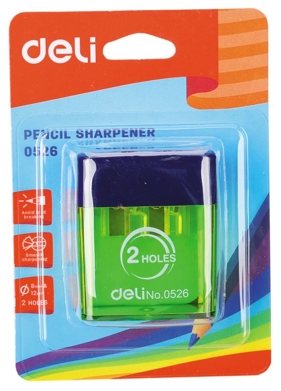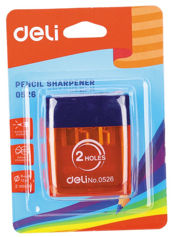 Точилка для карандашей ручная Deli E0526 2 отверстия пластик ассорти блистер (E0526) (упаковка 12 шт.)
