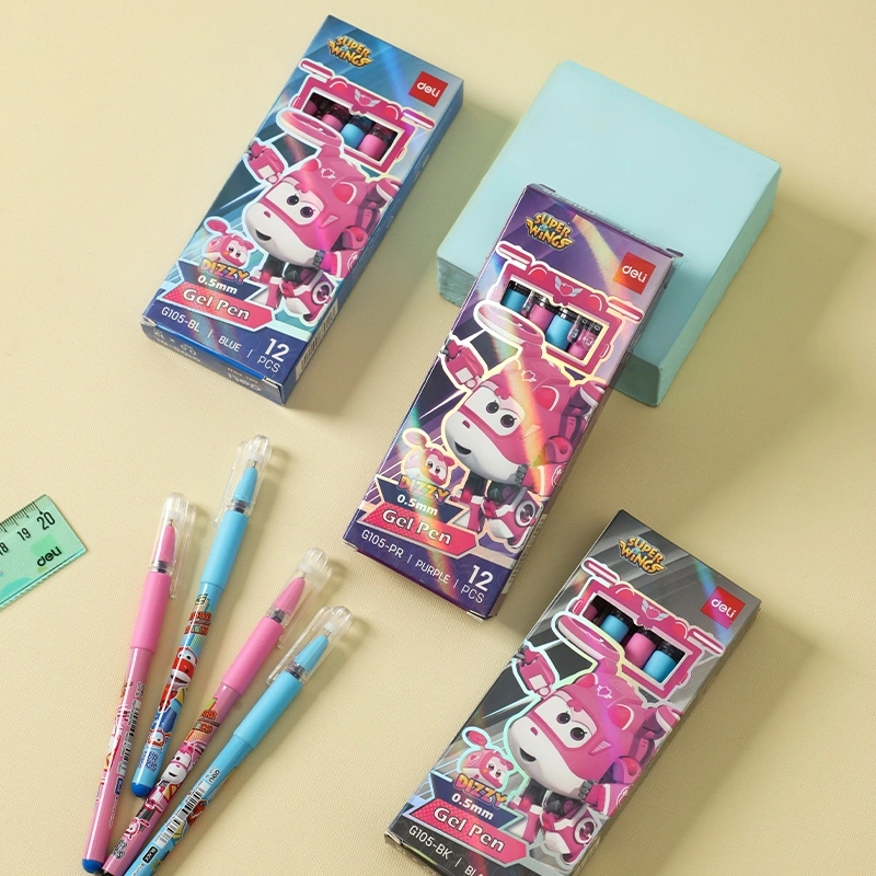 Ручка гелев. Deli Super Wings (EG105-PR) ассорти d=0.5мм фиол. черн. 1стерж. пулевидный пиш. наконечник кругл. резин. манжета (EG105-PR)