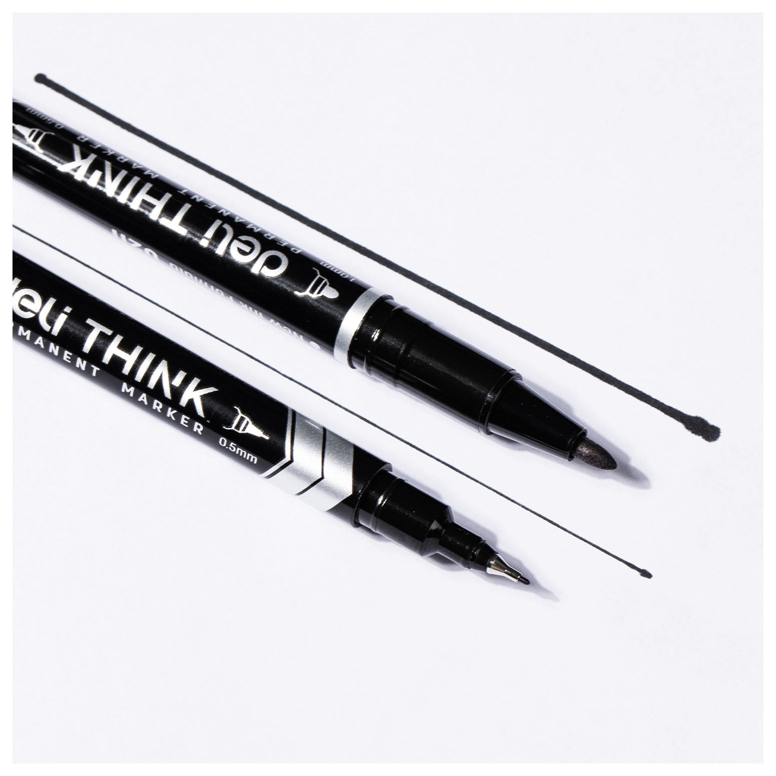 Маркер перманентный Deli EU211-BK Think двойной пиш. наконечник 0.5-1мм черный (EU211-BK) (упаковка 12 шт.)