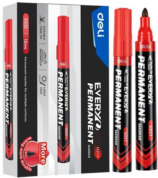 Маркер перманентный Deli EU217-RD Everyu круг. пулевидный пиш. наконечник 2.5мм заправляемый красный (EU217-RD) (упаковка 12 шт.)