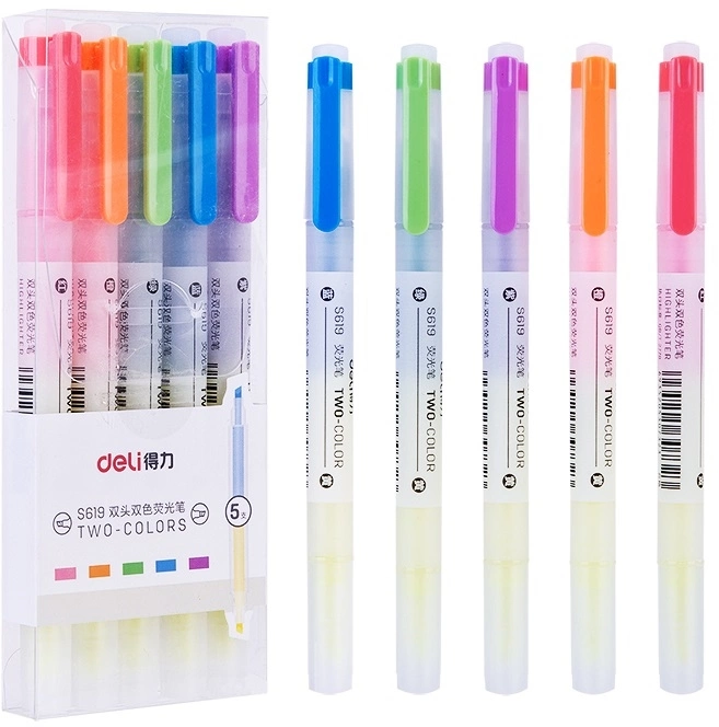 Набор текстовыделителей Deli S619 скошенный пиш. наконечник двухсторонний 6цв. ПЭТ-бокс (5шт.) (S619) (упаковка 24 шт.)