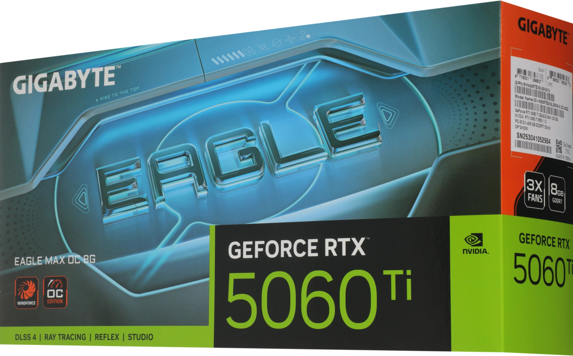 Видеокарта Gigabyte PCI-E 5.0 GV-N506TEAGLEMAX OC-8GD 1.0 NVIDIA GeForce RTX 5060TI 8Gb 128bit GDDR7 2617/28000 HDMIx1 DPx3 HDCP Ret (GV-N506TEAGLEMAX OC-8GD)