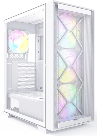 поставляется с двумя передними панелями: сетчатой ??панелью для дополнительного воздушного потока и панелью из закаленного стекла