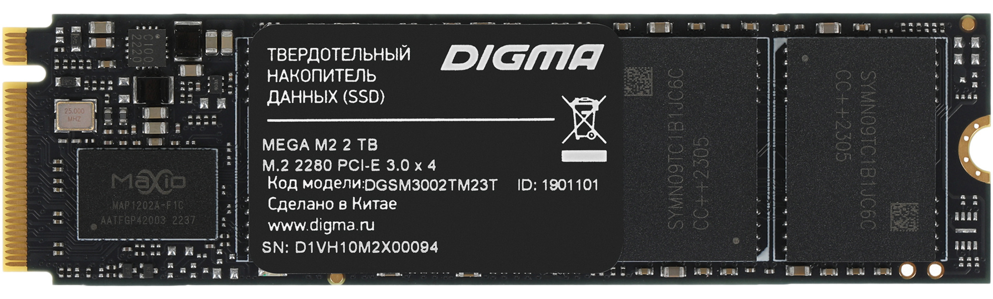Накопитель SSD Digma PCIe 3.0 x4 2TB DGSM3002TM23T Mega M2 M.2 2280 (DGSM3002TM23T)