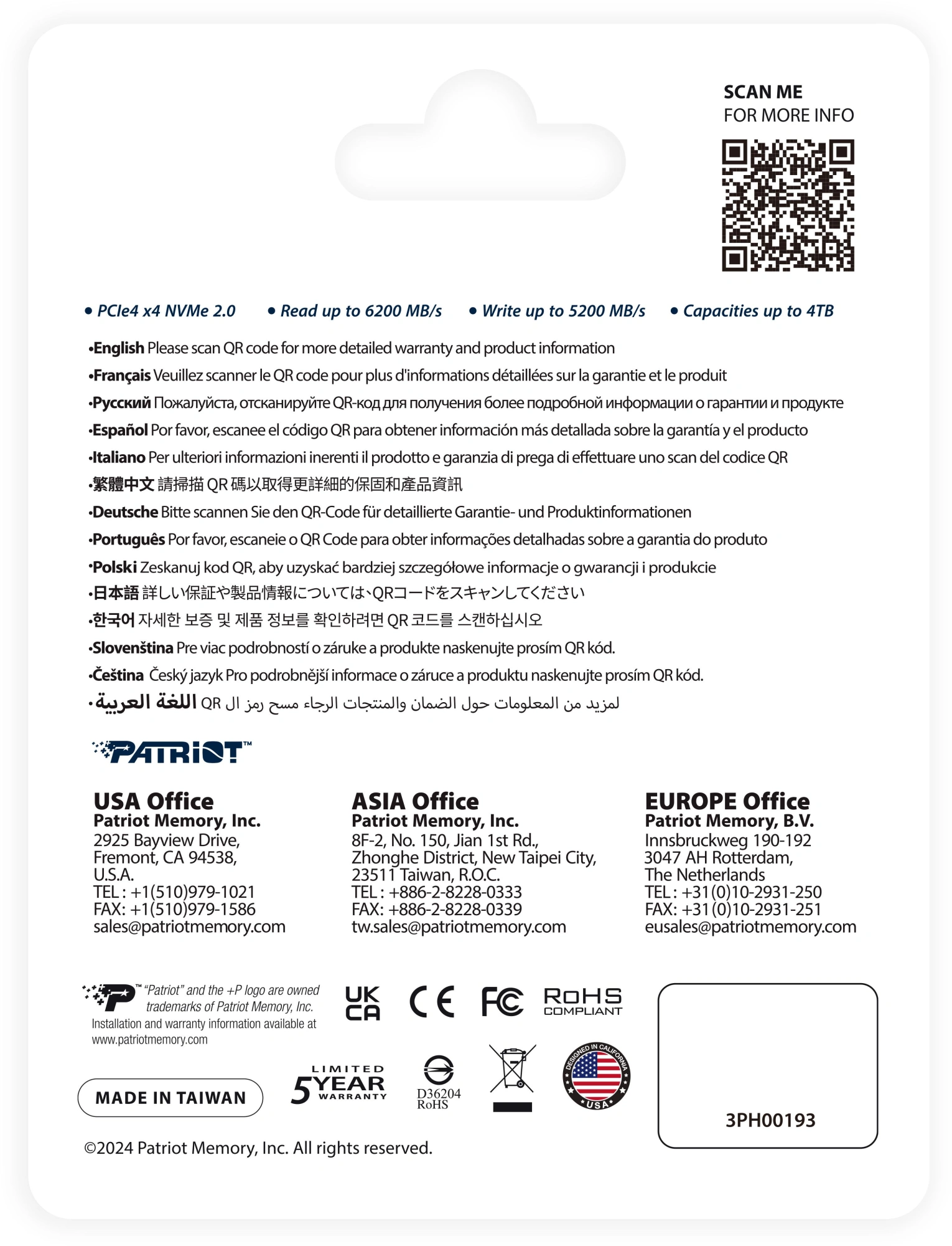 Накопитель SSD Patriot PCIe 4.0 x4 500GB P400VP500GM28H P400 V4 M.2 2280 (P400VP500GM28H)