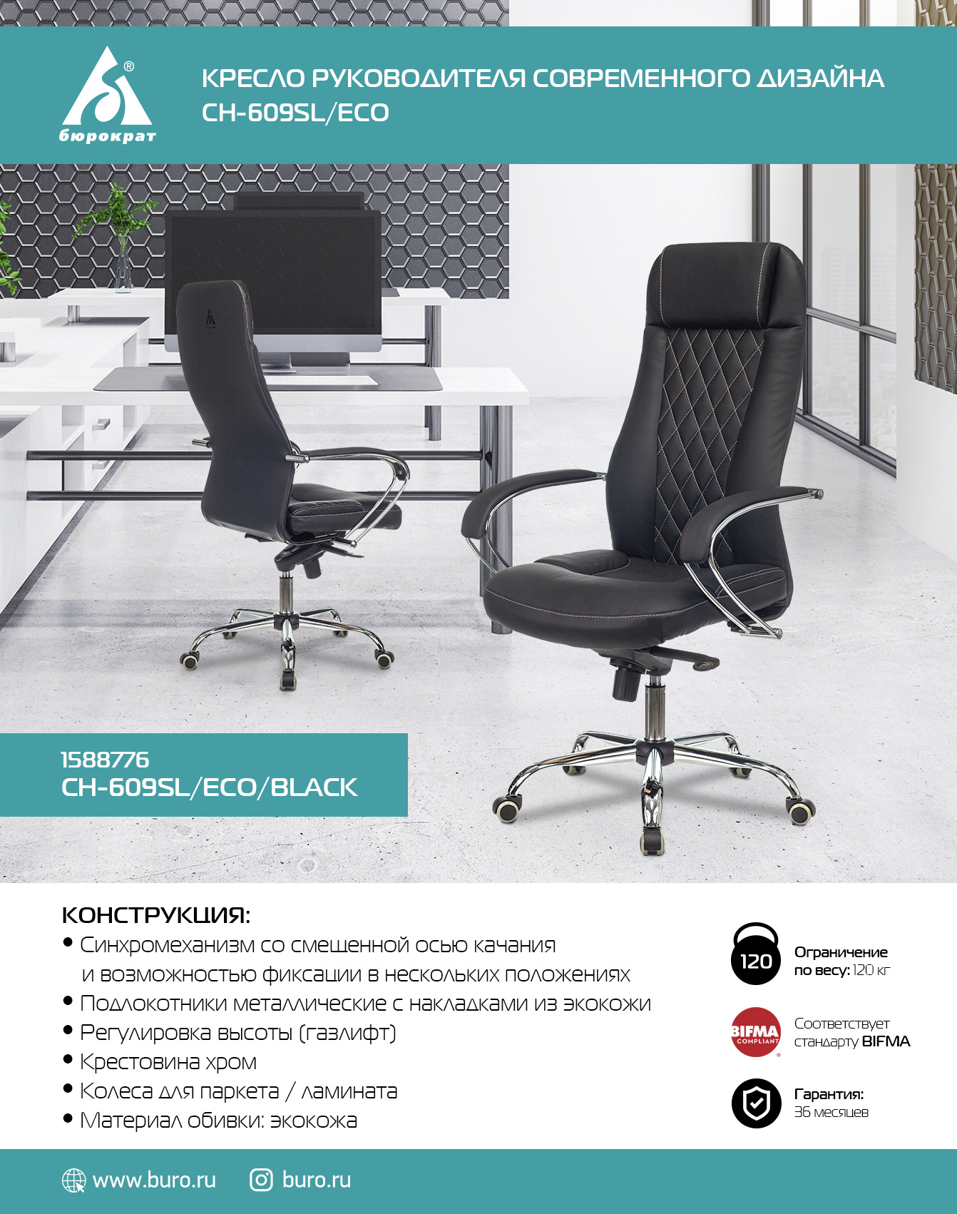 Кресло эргономичное Бюрократ CH-609SL/ECO черный экокожа крестов. металл хром (CH-609SL/ECO/BLACK)