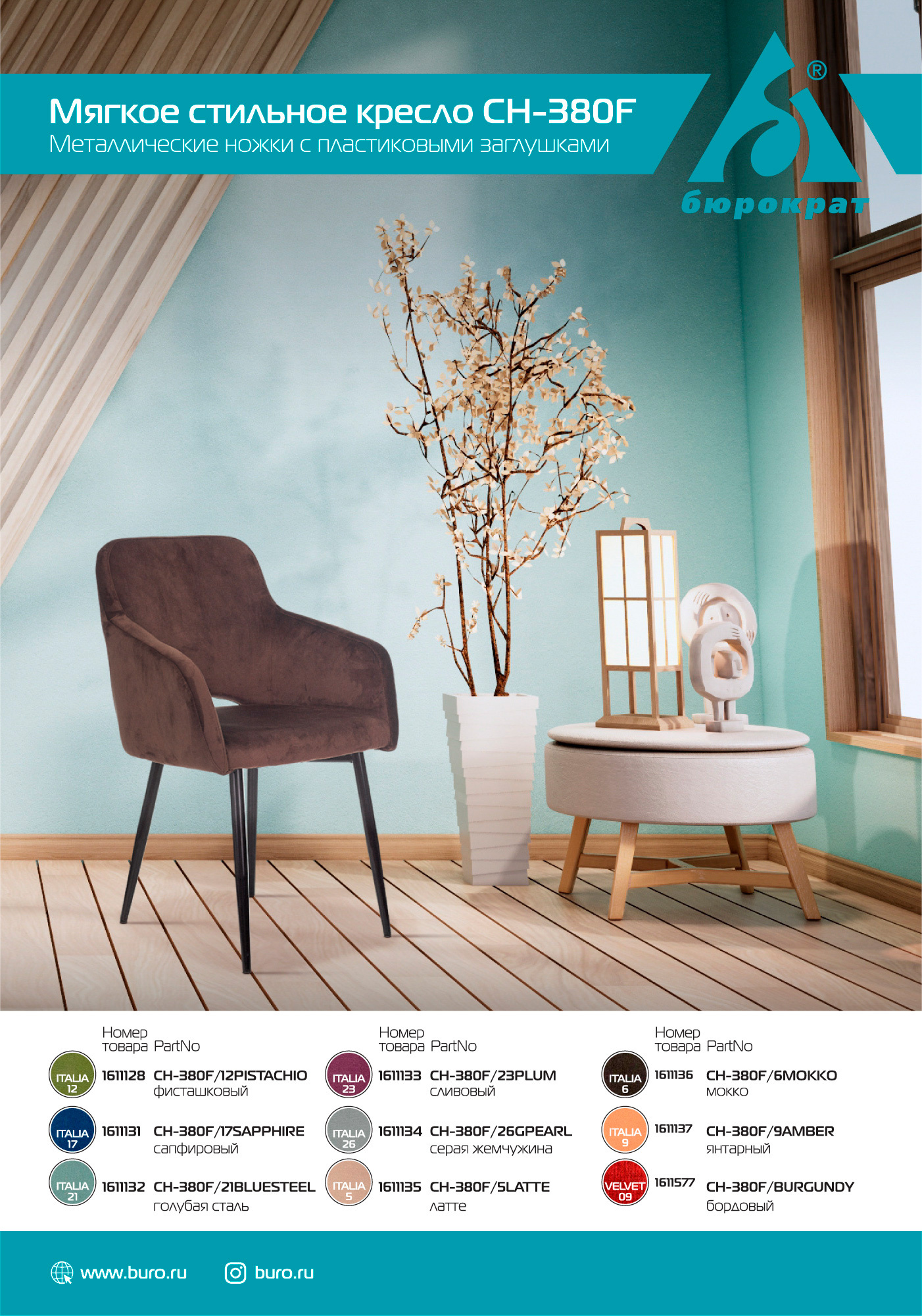 Отзывы на Кресло Бюрократ CH-380F фисташковый Italia 12 на ножках металл черный (CH-380F/12PISTACHIO) отсутствуют