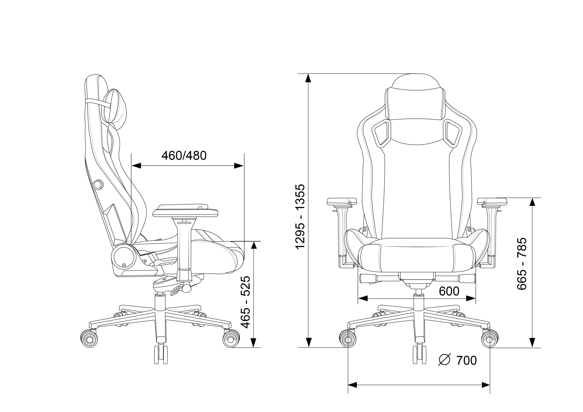 высоты (газлифт), высоты подголовника, жесткости качания, положения подлокотников, поясничной области