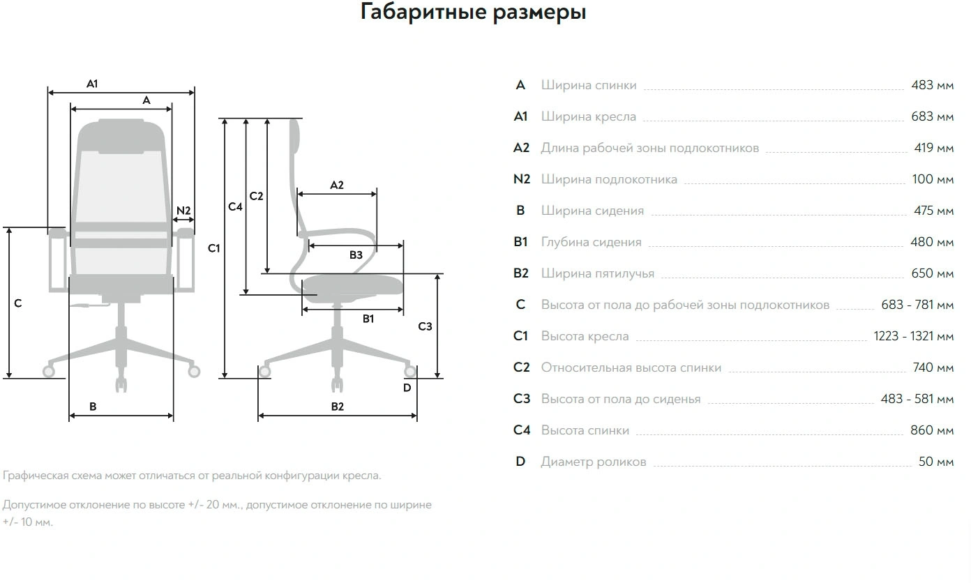 Высота с подлокотниками MIN