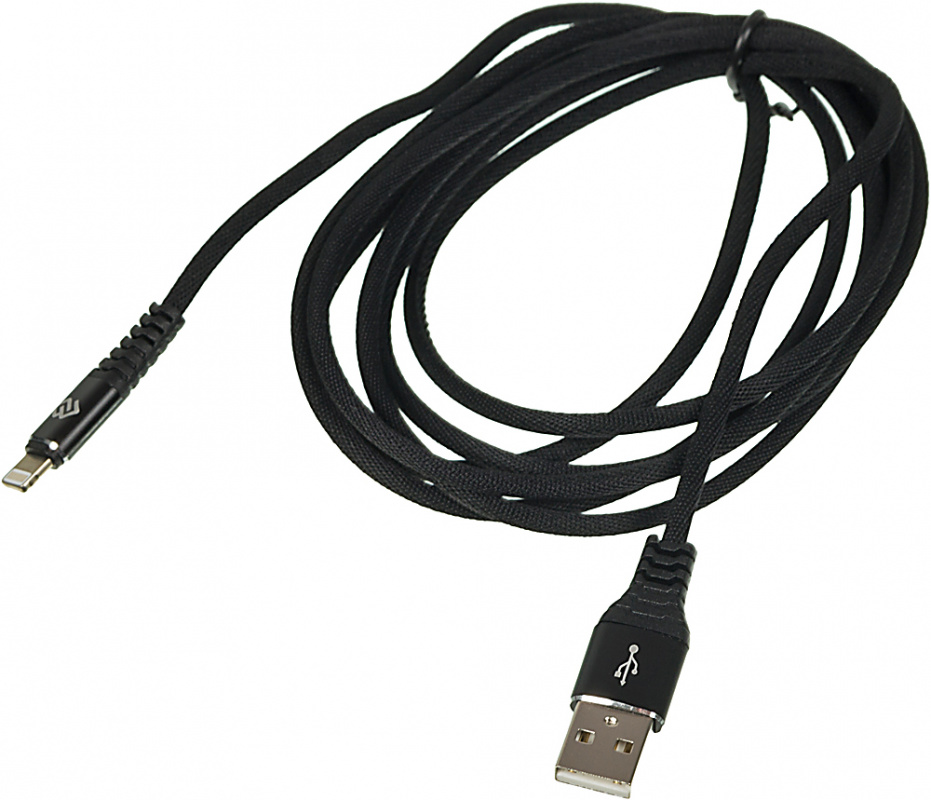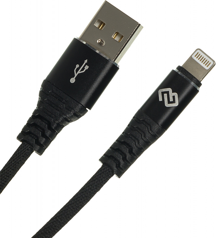 Кабель Digma LIGHT-2M-BRAIDED-BLK USB (m)-Lightning (m) 2м черный (LIGHT-2M-BRAIDED-BLK)