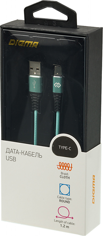 Кабель Digma TYPE-C-1.2M-BRAIDED-GR USB (m)-USB Type-C (m) 1.2м зеленый (TYPE-C-1.2M-BRAIDED-GR)