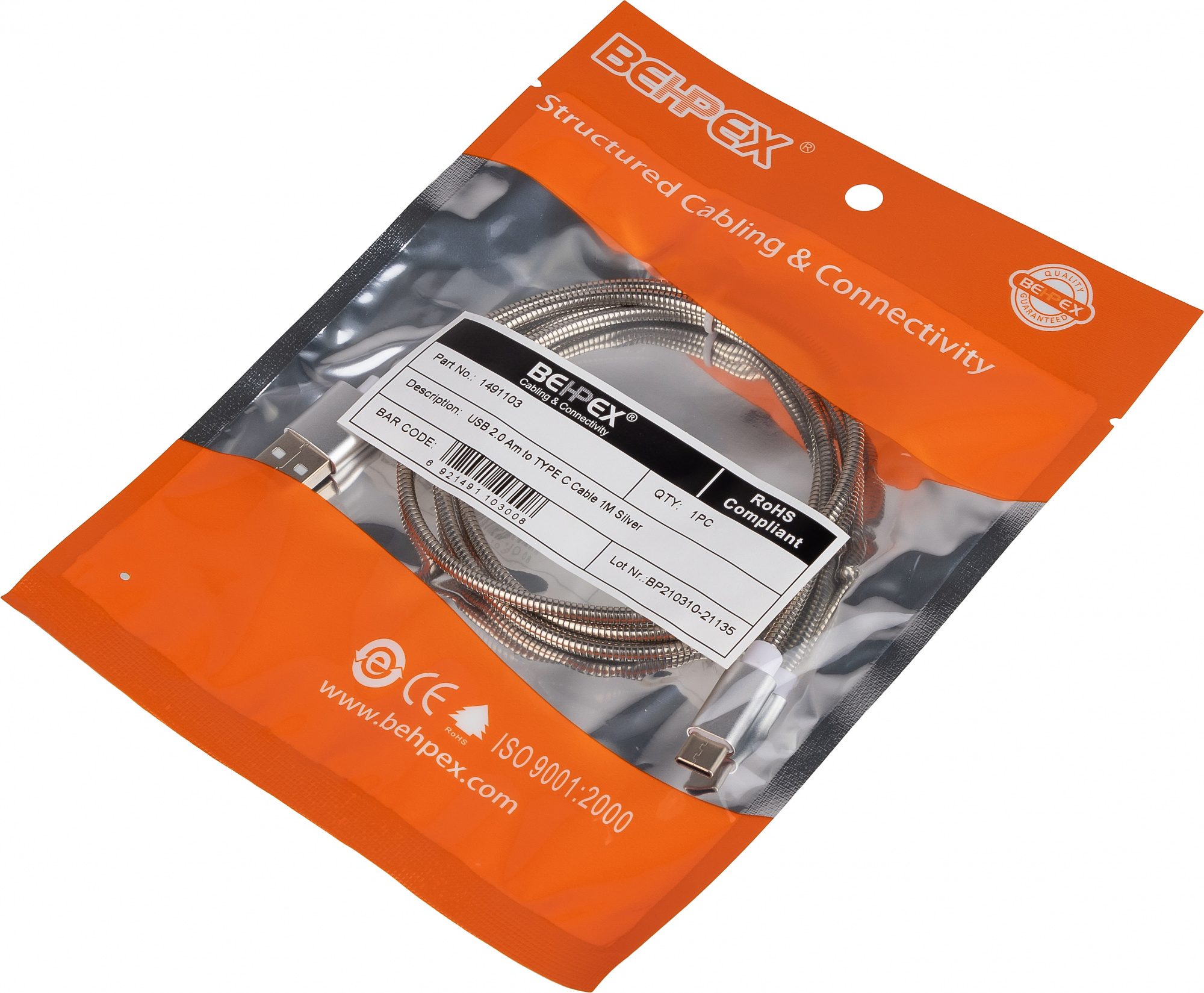 Кабель с металлическими коннекторами для передачи данных между персональными компьютерами и смартфонами, планшетами и прочими устройствами с портом USB Type-C.