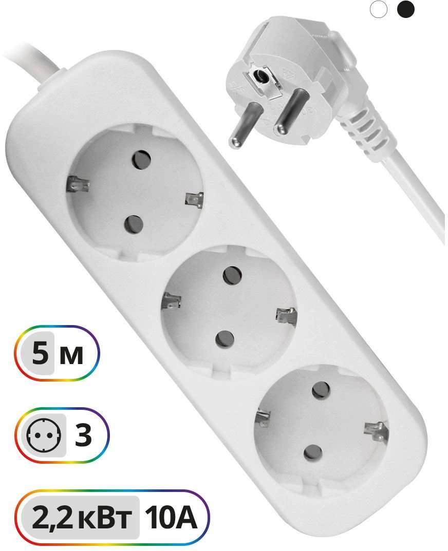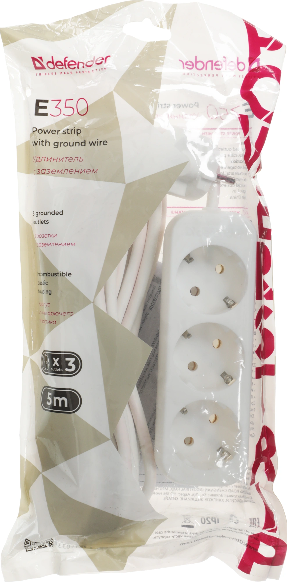 Сетевой удлинитель Defender E350 5м (3 розетки) белый (пакет ПЭ) (99223)