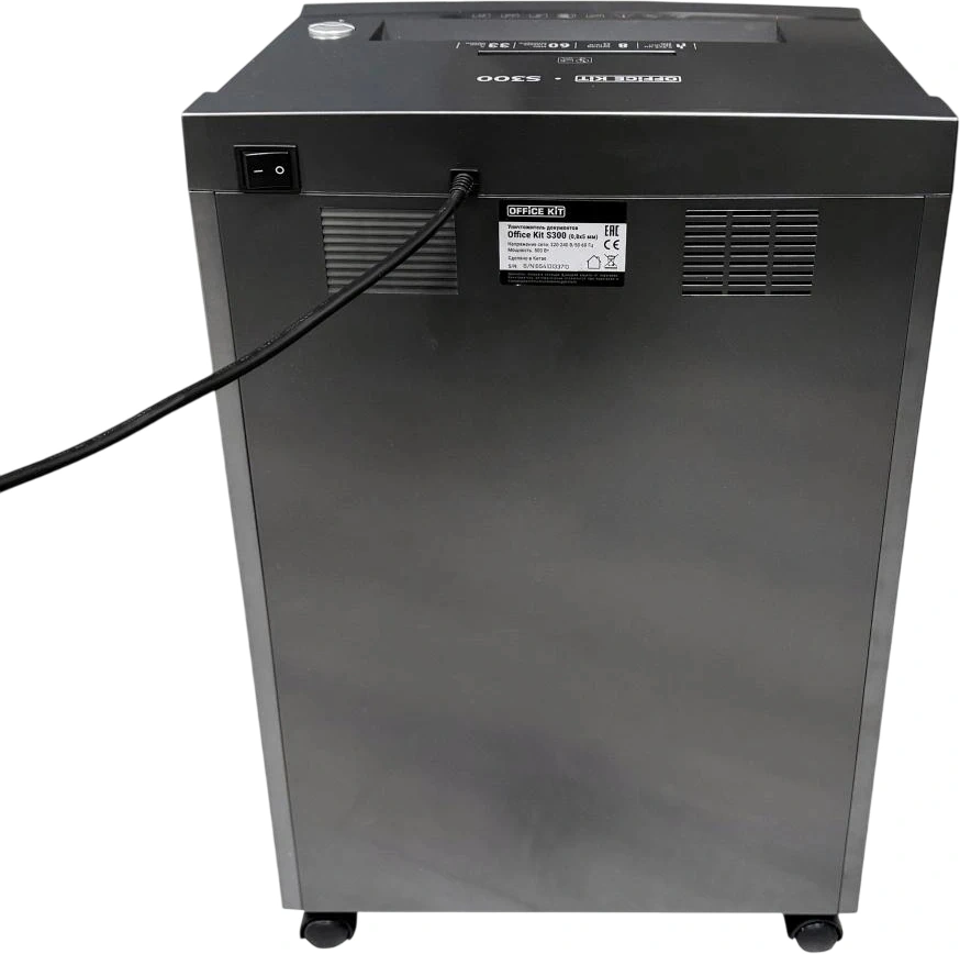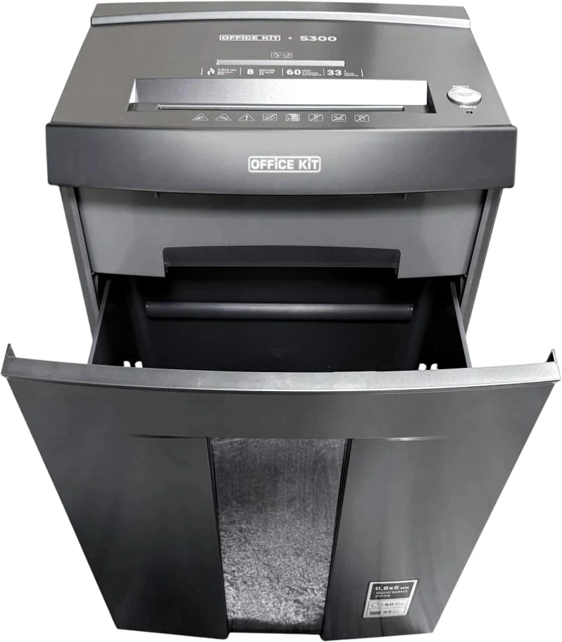 Шредер Office Kit S300 0,8x5 черный (секр.P-7) фрагменты 8лист. 33лтр. пл.карты CD (OK0805S300)