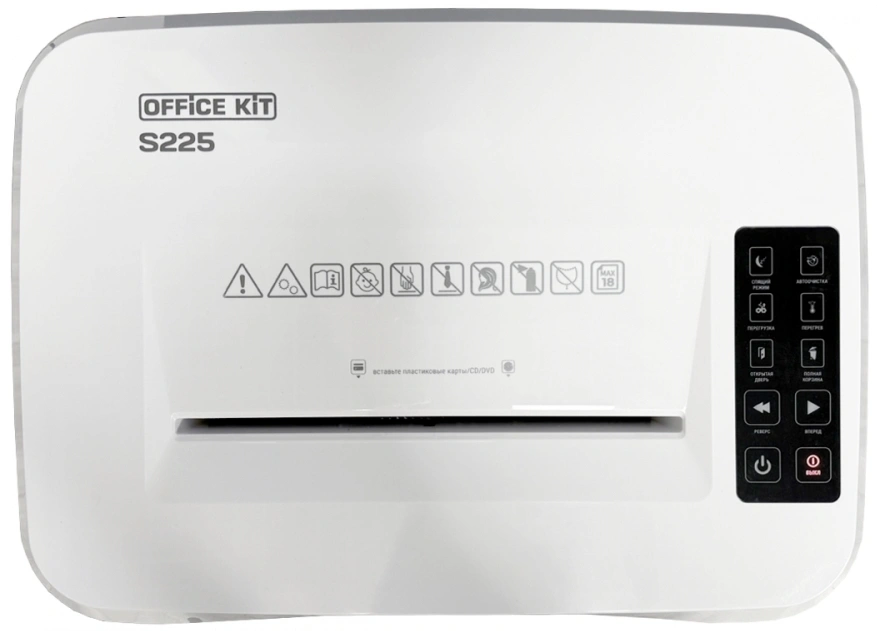 Отзывы на Шредер Office Kit S225 1,9х12 белый (секр.P-5) фрагменты 18лист. 35лтр. скобы пл.карты CD (OK1912S225) отсутствуют