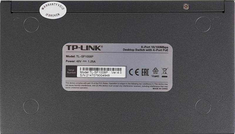 Коммутатор TP-Link TL-SF1008P (L2) 8x100Мбит/с 4PoE 57W неуправляемый (TL-SF1008P)