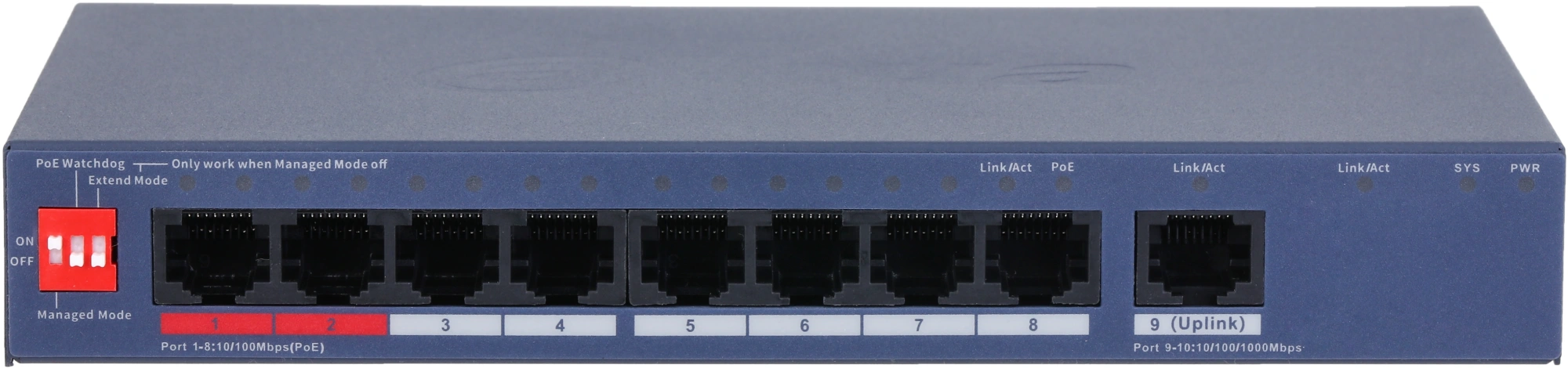 Коммутатор Dahua DH-CS4009-8ET1GT-110 (L2) 8x100Мбит/с 1x1Гбит/с 8PoE 110W управляемый (DH-CS4009-8ET1GT-110)