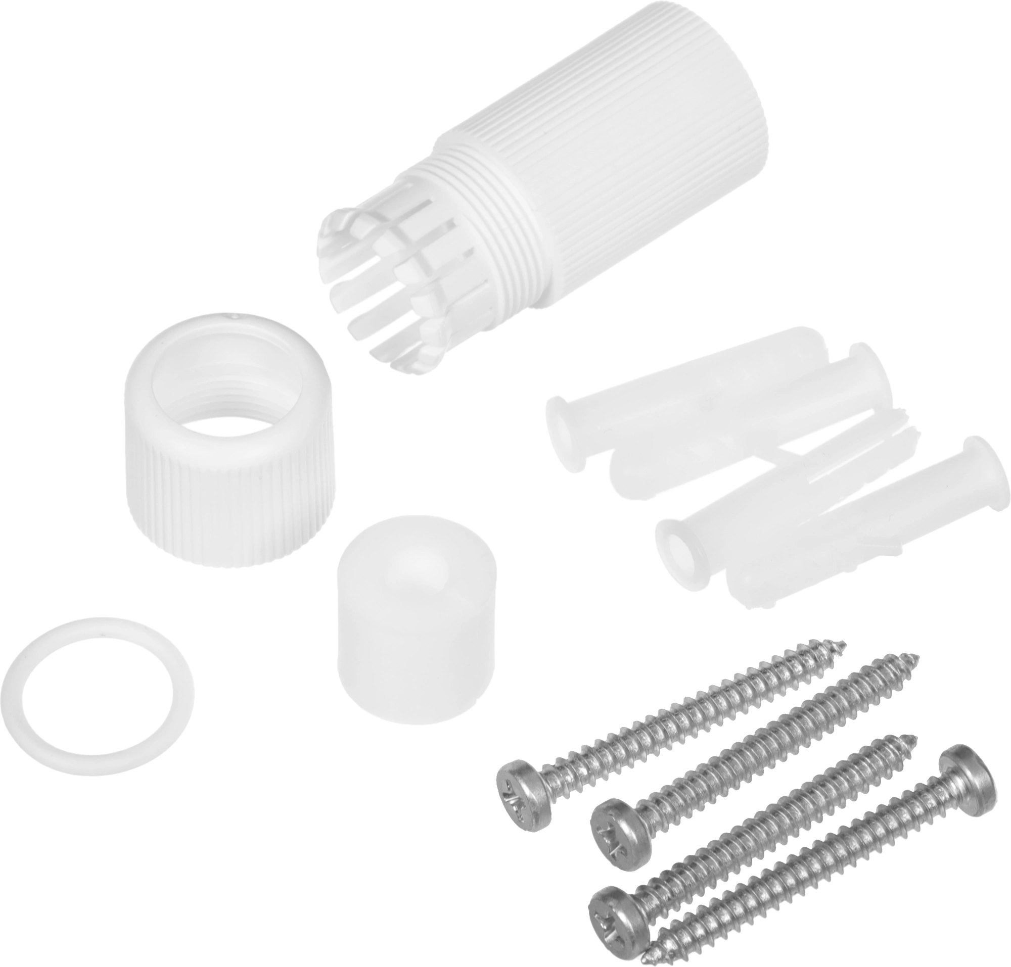 Камера, адаптер питания, наклейка-шаблон для настенного/потолочного монтажа, водонепроницаемая резиновая прокладка для силового кабеля, комплект винтовых принадлежностей, водонепроницаемый комплект из четырех частей с портом Ethernet, руководство пользователя, предупреждающая наклейка