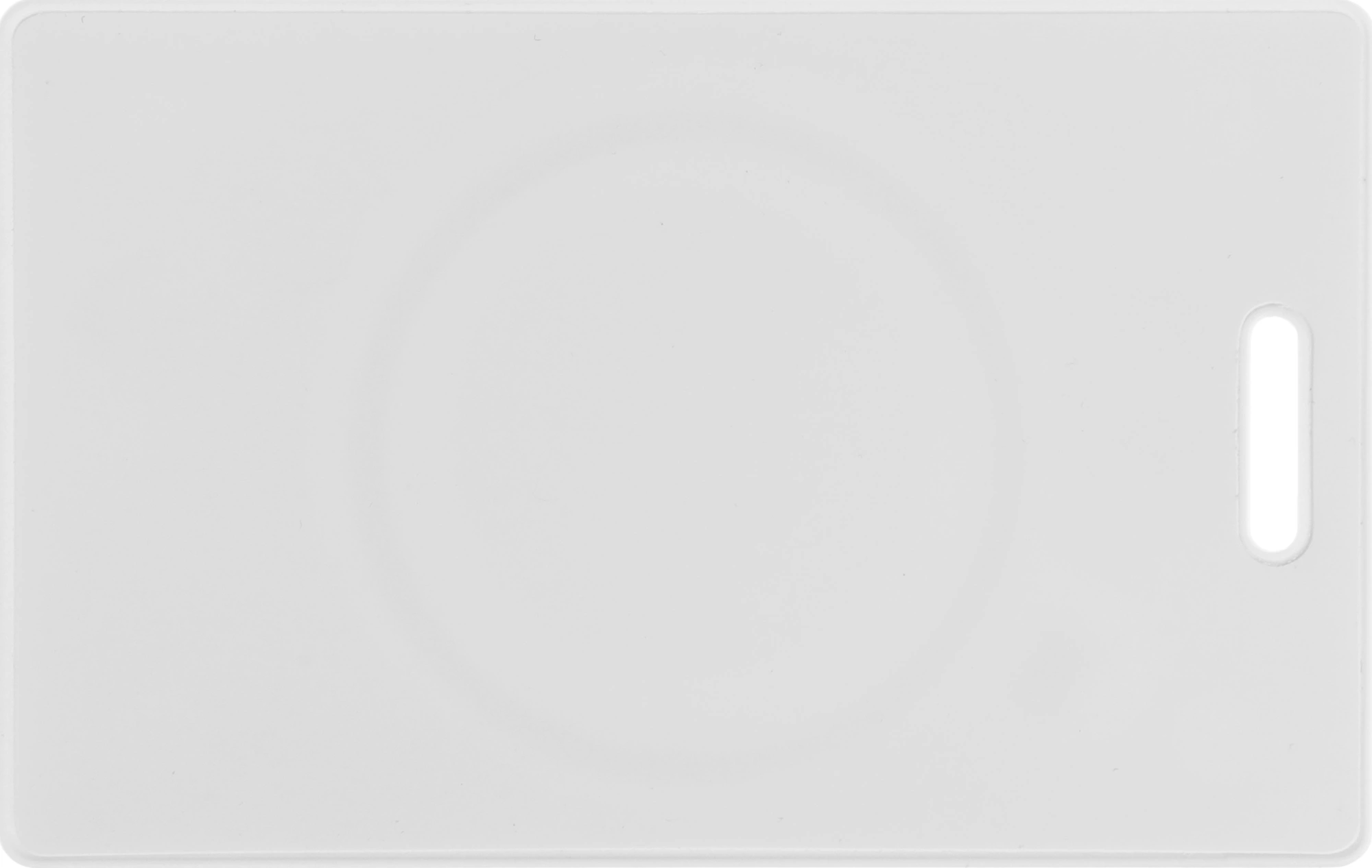 Карта стандартного образца формата Em-marine с прорезью. Размеры бесконтактного ключа, напоминающего по форме обыкновенный пропуск, позволяют носить его в кармане или бумажнике и с удобством эксплуатировать, не боясь испортить или потерять.