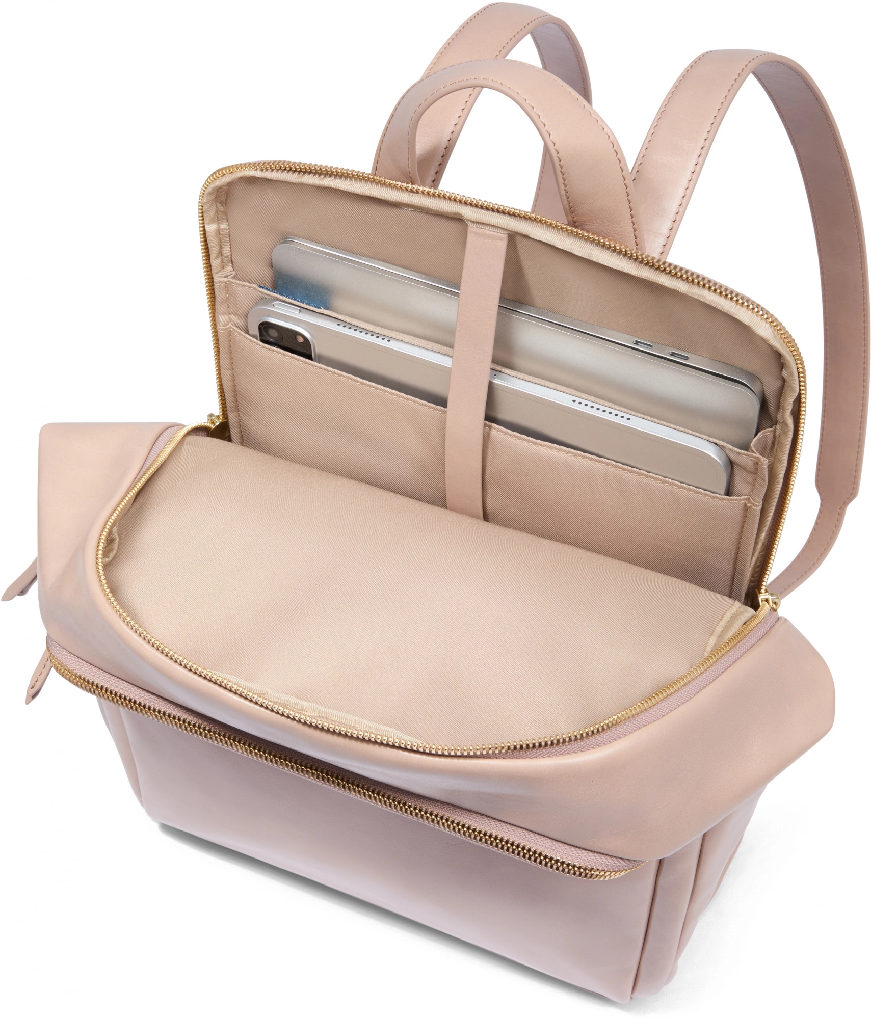 Кожаный женский рюкзак для ноутбука iPad® с амортизацией и защитой от мошенничества, карманами для AirPods® и бутылочки