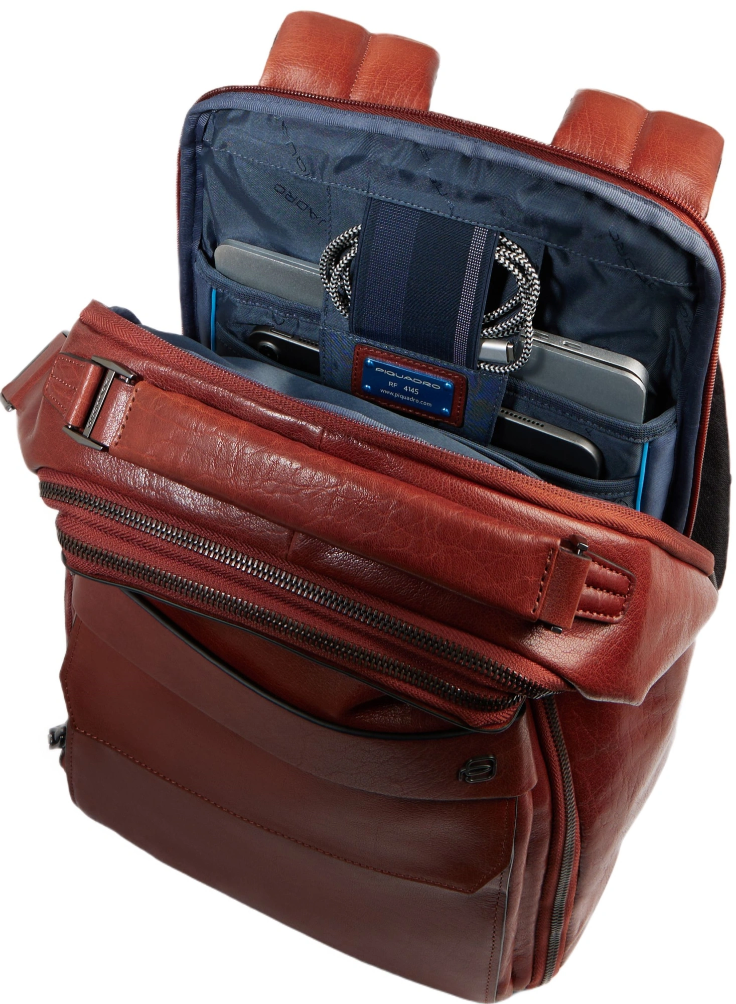 Персонализированный дорожный рюкзак из кожи для ноутбука и iPad® с карманом для AirPods®, RFID-идентификатором и амортизирующей защитой