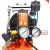 Двигатель оснащен термопредохранителем. Прессостат контролирует включение и выключение подкачки воздуха. Быстросъемный штуцер для удобства. Регулировка и контроль давления в ресивере и на выходе при помощи двух манометров. Набирает давление от 0 до 8 бар за 60 секунд.