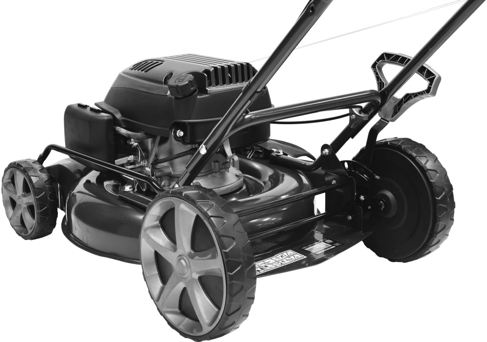 Большие колеса для лучшей проходимости; Система измельчения травы (мульчирования) для удобрения почвы Eco Clip; Экономичный двигатель с высокой производительностью; Центральный рычаг регулировки высоты скашивания; Регулируемая складная рукоятка; Прочная стальная дека