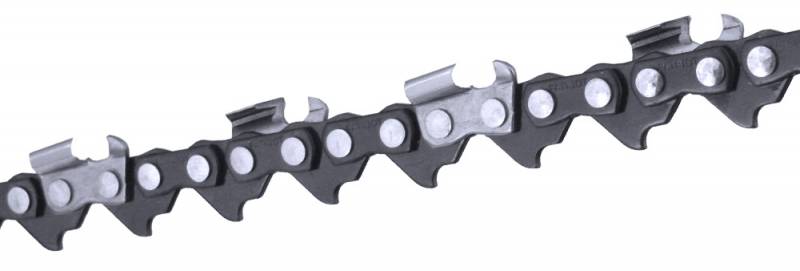 Высококачественная цепь из современных материалов, небольшая отдача и увеличенная производительность. Металл цепи проходит дополнительную термическую обработку для увеличения ресурса и придания прочности. Режущая поверхность зуба имеет риску для индикации критического уровня износа.