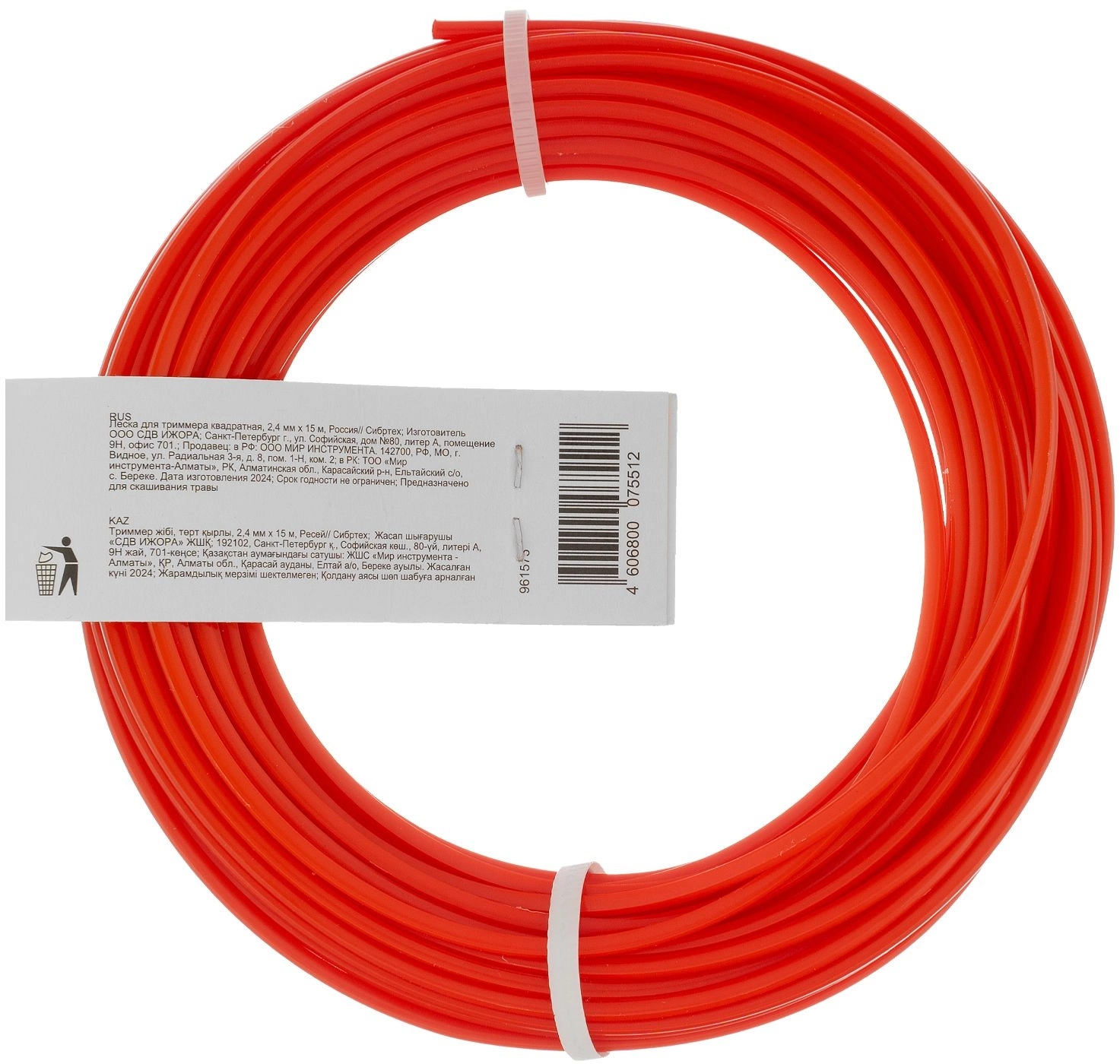 СИБРТЕХ Леска для садовых триммеров Сибртех 961575 d=2.4мм L=15м (961575)