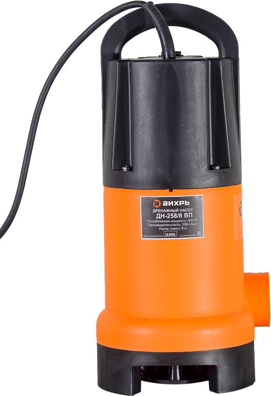 ВИХРЬ Насос дренажный Вихрь ДН-258/8 ВП 900Вт 15480л/час (в компл.:Переходник "Елочка" на три размера шланга 25/32/40мм) (68/2/13) (68/2/13)