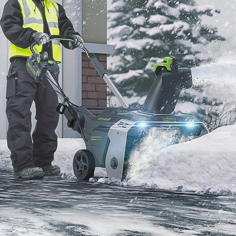 Снегоуборщик аккумуляторный Greenworks 82 вольт (модель GD82ST) - предназначен для очистки от снега с больших территории перед домом, гаражом, а также веранд, дорожек. Мощный бесщеточный двигатель серии DigiPro, равен по мощности бензиновым аналогам, при этом полностью экологичен.