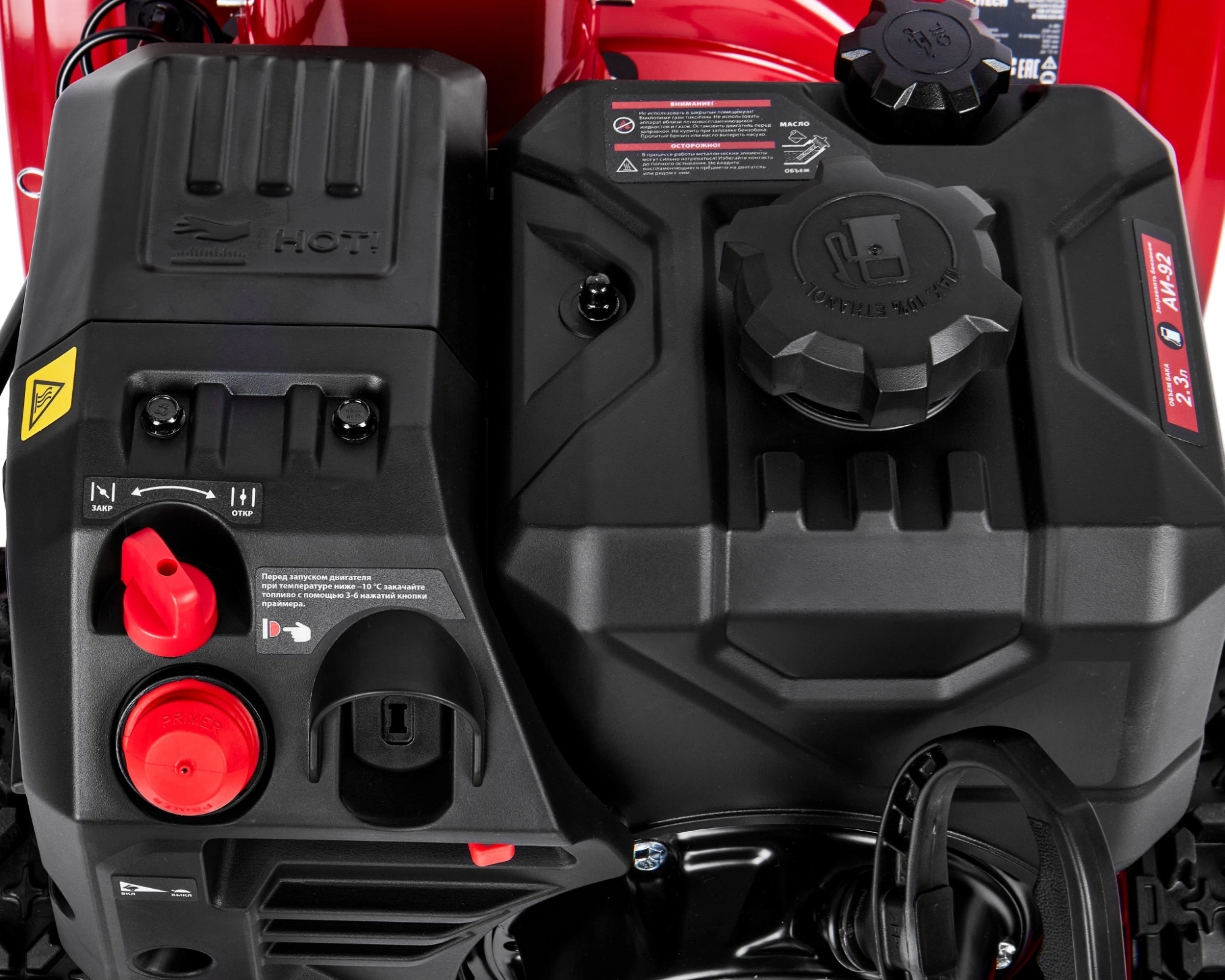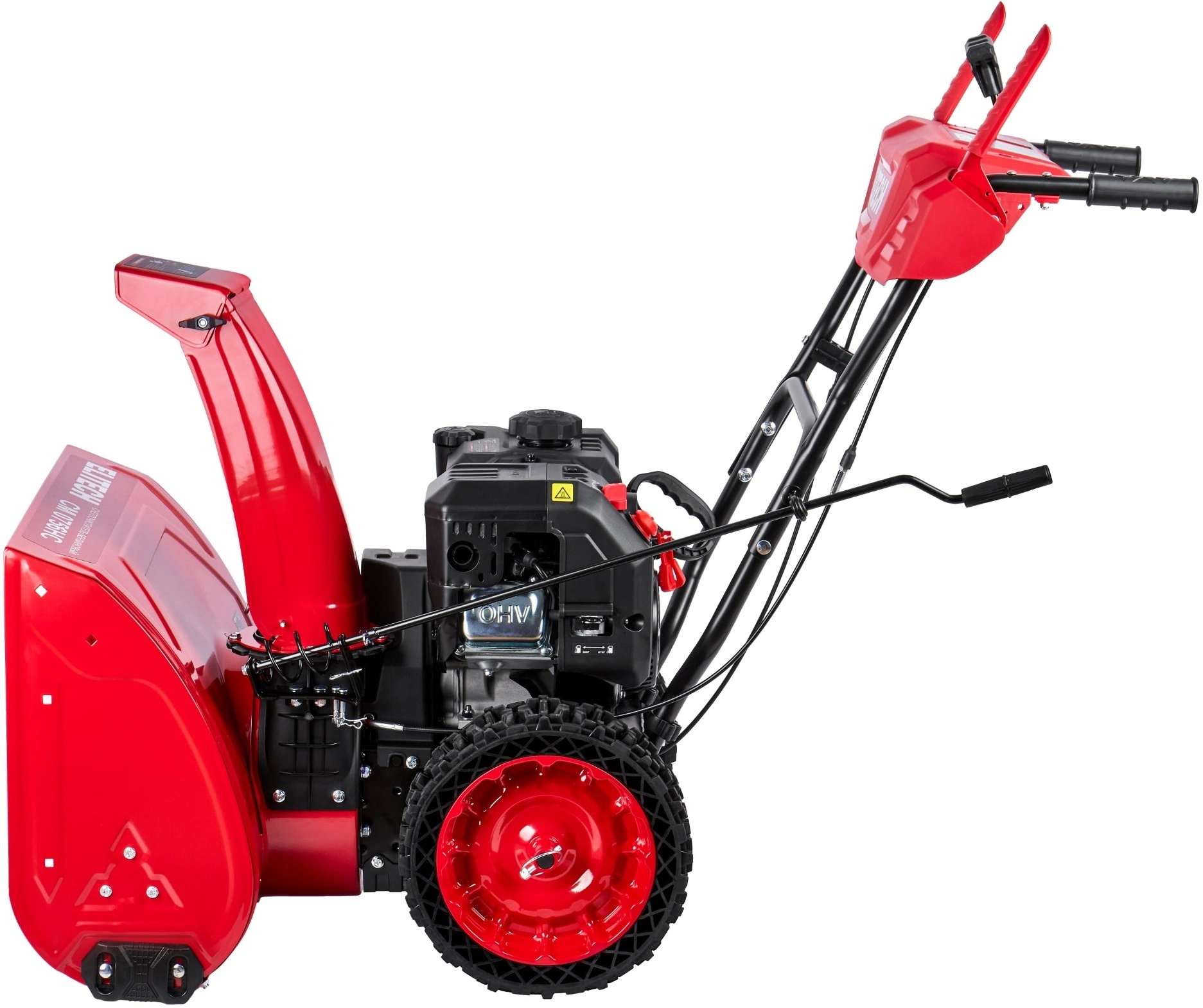 Бензиновый колёсный снегоочиститель мощностью 4 кВт с ковшом шириной 560 мм и высотой 520 мм, предназначен для уборки свежевыпавшего снега с ровных и твердых поверхностей.