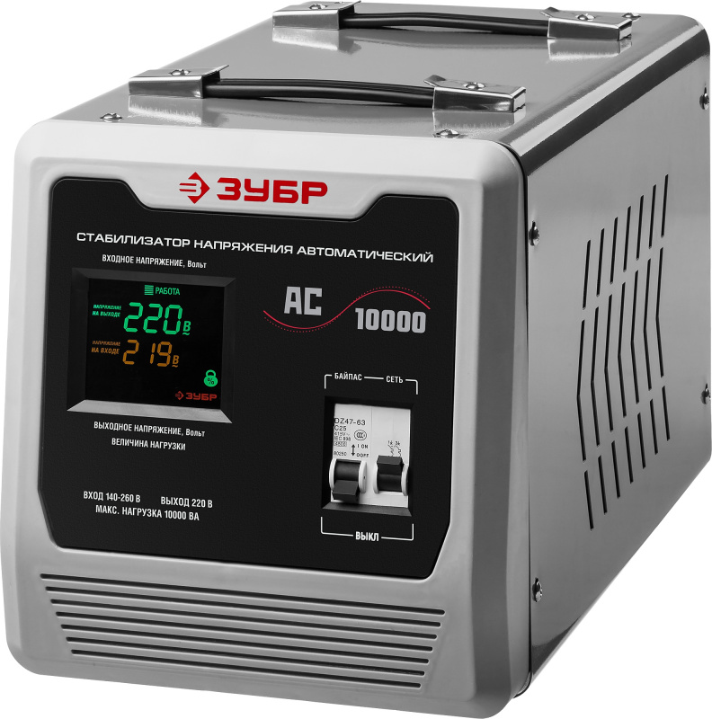 ЗУБР Стабилизатор напряжения Зубр АС 10000 10кВА однофазный серый (59380-10) (59380-10)