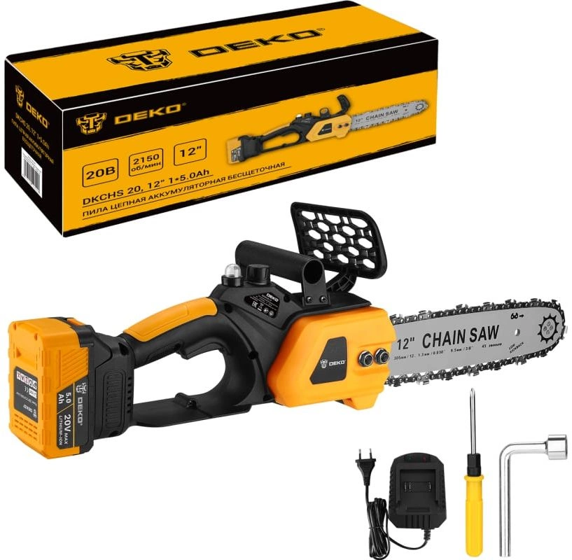 Цепная пила Deko DKCHS 20-12 аккум. дл.шины:12" (30cm) 1аккум. 5Ач ЗУ (085-2001) (085-2001)