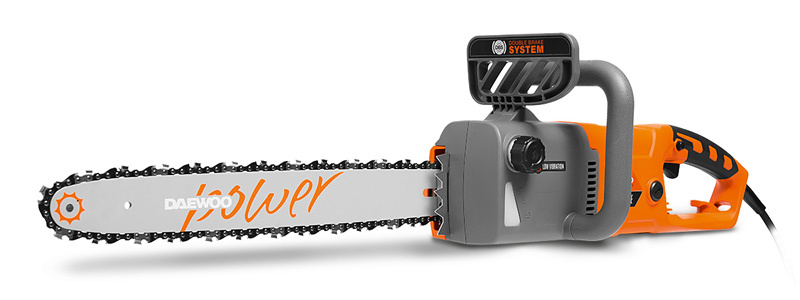 Электрический двигатель Daewoo; Корпус из ударопрочного пластика ABS; Эргономичная рукоятка с прорезиненной накладкой; Плавный пуск двигателя; Металлический зубчатый упор; Система быстрой установки и натяжения цепи SDS; Индикатор уровня цепного масла; Защита от случайного включения