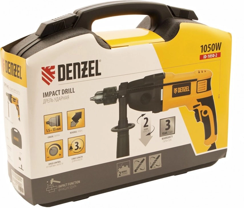 Дрель ударная Denzel ID-1050-2 1050Вт ключевой реверс (кейс в комплекте) (26312) (26312)