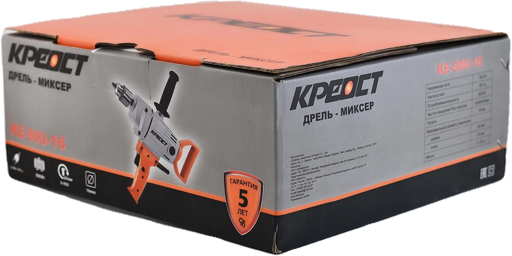 КРЕОСТ Дрель-миксер безударная Креост KE-900-16 900Вт ключевой реверс (KE-900-16)