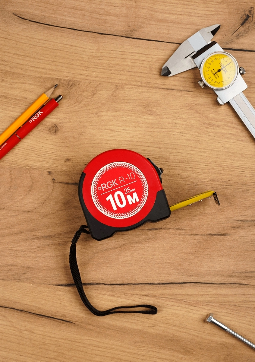 Рулетка строительная RGK R10 дл.полотна 10м изм.шкала в см зацеп простой красный/черный (755986) (755986)