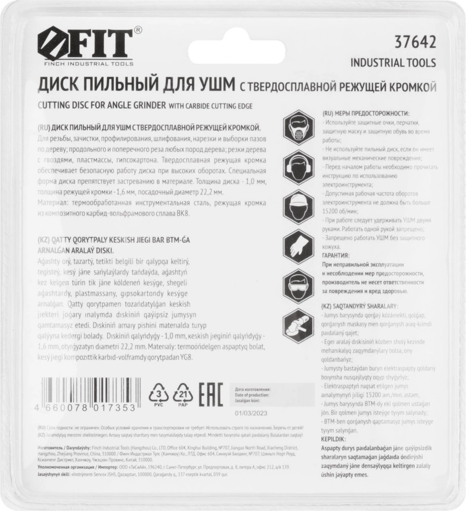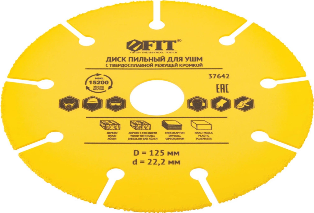 Диск пильный по дер. FIT 37642 d=125мм d(посад.)=22.2мм (угловые шлифмашины) (37642)