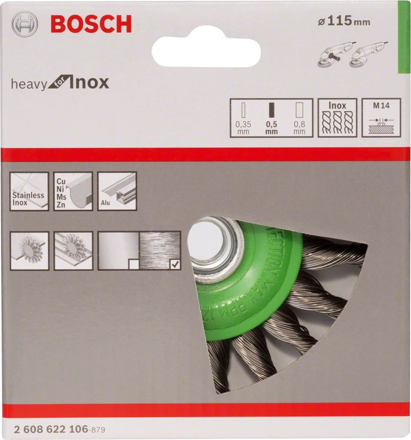 Щетка дисковая по мет. Bosch 2608622106 d=115мм d(посад.)=14мм (шлифовальные машины) (упак.:1шт) (2608622106)