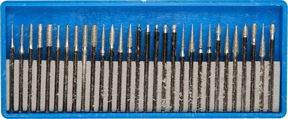 Набор ЗУБР: Мини-насадки с алмазным напылением в пластиковом боксе, P=180, хвостовик d=3 мм., 30 предметов.