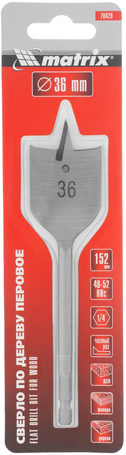Сверло Matrix 70429 по дереву Д=36мм Дл=152мм (1пред.) для дрелей (70429)