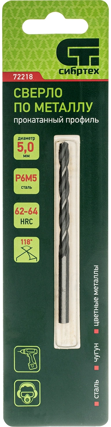 СИБРТЕХ Сверло Сибртех 72218 по металлу Д=5мм Дл=86мм (1пред.) для дрелей (72218)