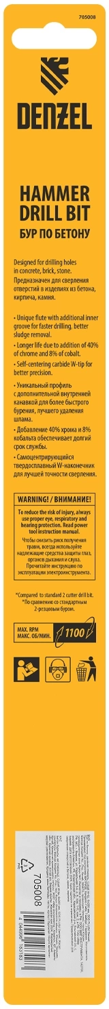 Бур Denzel 705008 по бетону Д=6мм Дл=260мм (1пред.) для перфораторов (705008)
