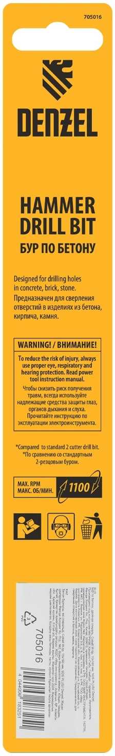 Бур Denzel 705016 по бетону Д=10мм Дл=160мм (1пред.) для перфораторов (705016)